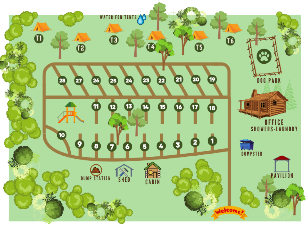 10 Acre Campground with 28 FHU sites and room to expand.